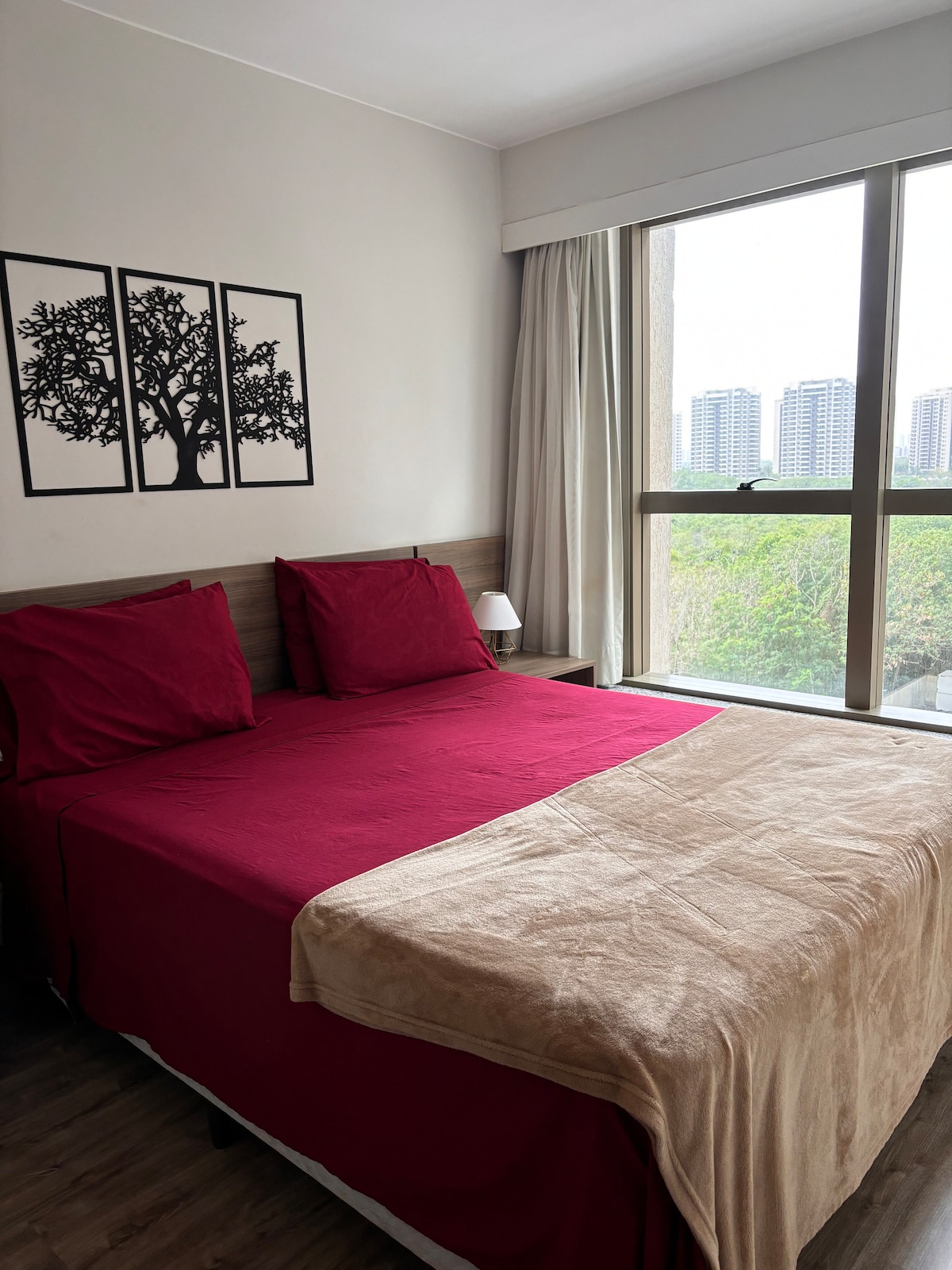 Moderne en gezellige flat, die het comfort van een hotel combineert met de vrijheid van een woning. De ruimte is ideaal voor zowel vakantiegangers als zakenreizigers en heeft een suite met queensize bed, airconditioning, wifi, tv en minibar. Het appartement biedt een uitstekende infrastructuur: fitnessruimte, zwembad, sauna, jacuzzi en restaurant met betaalbare prijzen. De locatie is bevoorrecht, op slechts 100 meter van RioCentro, wat zorgt voor functionaliteit en gemakkelijke toegang tot verschillende attracties in Barra da Tijuca.