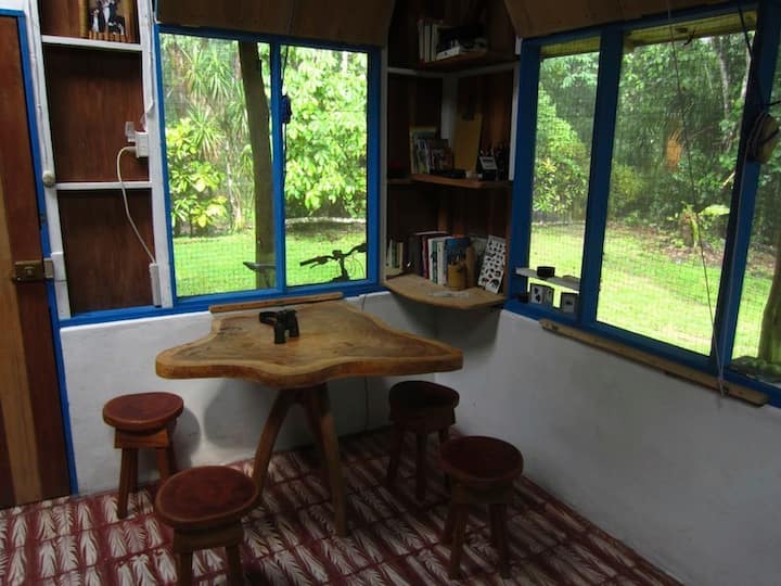 De SCHUILPLAATS IN DE JUNGLE: De dichtstbijzijnde buren - en je lokale verhuurders - zijn Fernando en Xinia (uitgesproken als "Sinia") Quiros. Het huis van de Quiros ligt een halve kilometer ten zuiden van de Jungle Hideaway. Xinia en Fernando brengen je in de JUNGLE SCHUILPLAATS voor je verblijf. (alleen Spaans!)