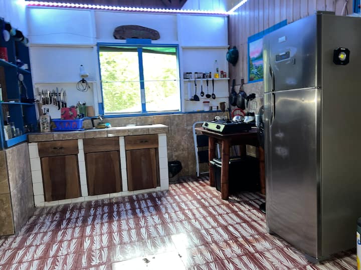Elektriciteit; gasfornuis; koelkast; blender; rijstpot; slowcooker (crock-pot); muskietennetten; comfortabele bedden (2); toilet & douche; wasmachine voor kleding (zonnedroger). Water uit de kraan is drinkbaar. Geen tv, maar een paar mensen in de gemeenschap spreken Engels. Ventilatoren, geen airco.