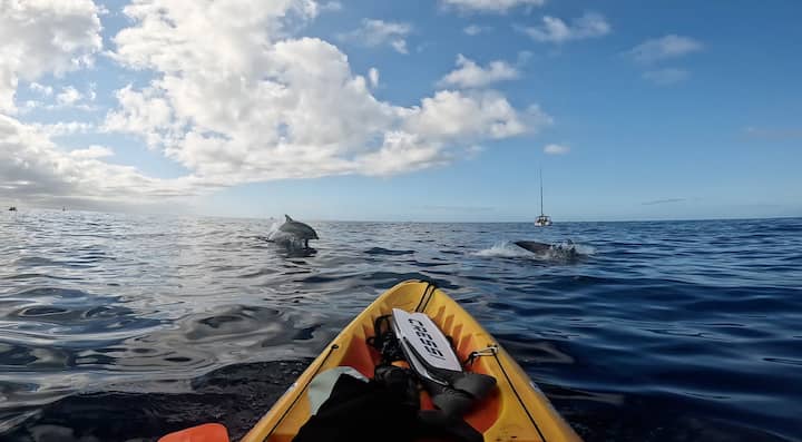 Ervaring met wilde dolfijnen en schildpadden per kajak