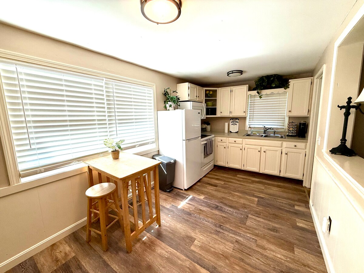 Deze zonnige, privésuite met een aparte ingang en oprit is handig voor alles. Als je naar een concert in de Arena gaat, in het centrum werkt, het Elliot Hospital bezoekt of een plek nodig hebt om te verblijven in de omgeving van Manchester, dan is dit de plek voor jou. Een magnetron, koelkast, koffiepot, zithoek en eettafel maken maaltijden eenvoudig. Je complete badkamer is voorzien van zachte handdoeken en een haardroger. De sprei wordt gewassen tussen gasten om ervoor te zorgen dat je verblijf comfortabel en schoon is.