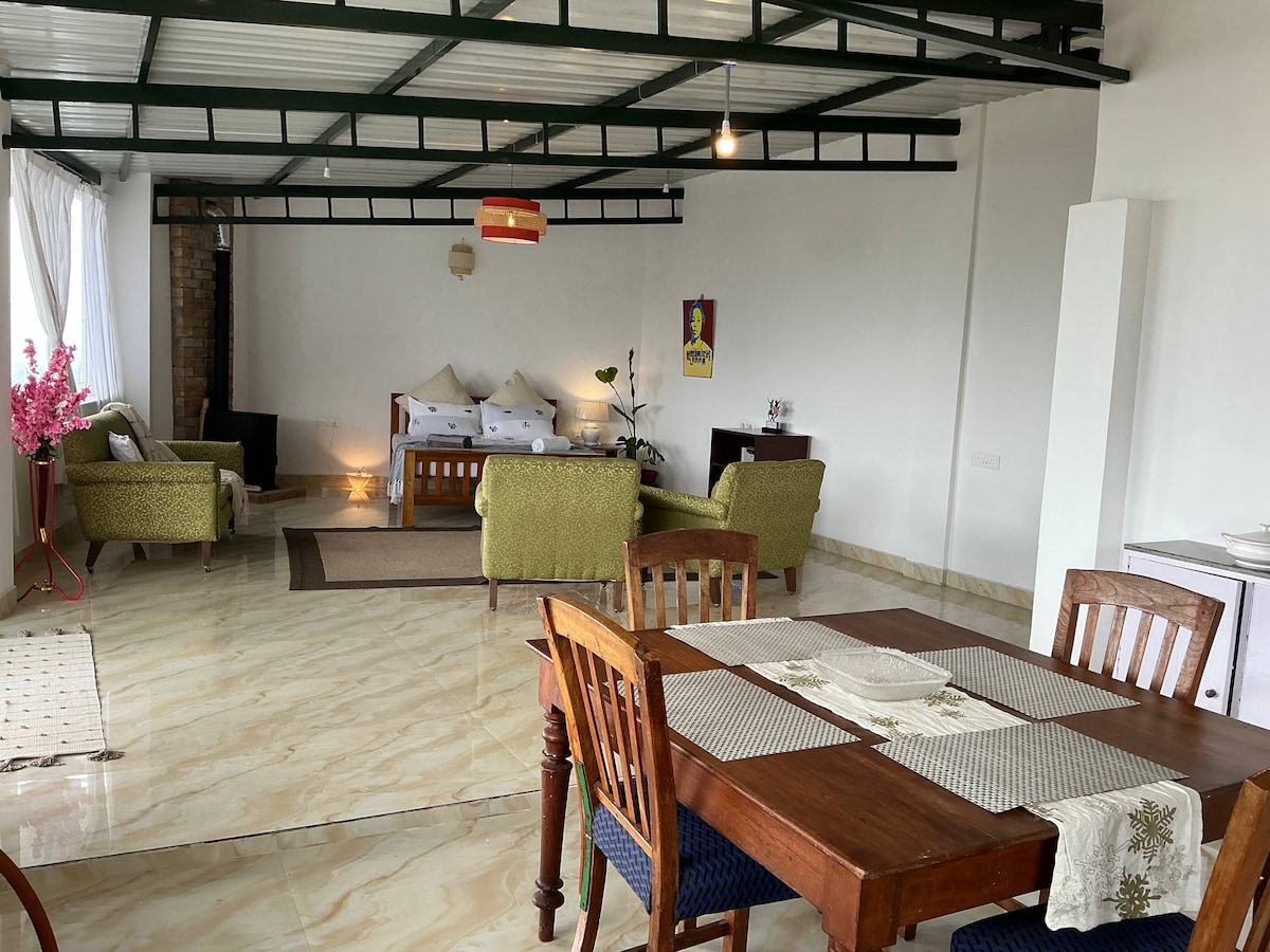 Welcome to Valley View Studio by Whispering Palms Kodaikanal a bright, spacious retreat designed for slow mornings, cozy evenings, and uninterrupted views of the hills. Perched above the valley, the studio is filled with natural light through large glass windows and opens out to a private balcony overlooking Kodaikanal town and distant lake views. Wake up to beautiful sunrises right from your room, making mornings here truly special.