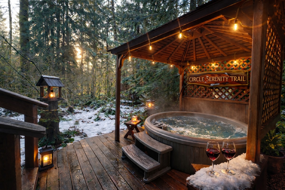 Dompel jezelf onder in de wildernis van Washington in een luxe moderne Airstream met vintage flair! Gelegen op slechts enkele minuten van Mt. Rainier National Park, onze 25’ Airstream ligt op bijna een halve hectare van Douglas dennenbos aan de rivier de Nisqually. Gezellig met een bordspel of plan je volgende avontuur op de topografische kaart van Mount Rainier. Ontspan buiten in de overdekte hot tub, wandel langs de rivier of kruip lekker bij de vuurplaats om s'mores te roosteren onder een sterrenhemel. De perfecte ontsnapping naar de natuur!