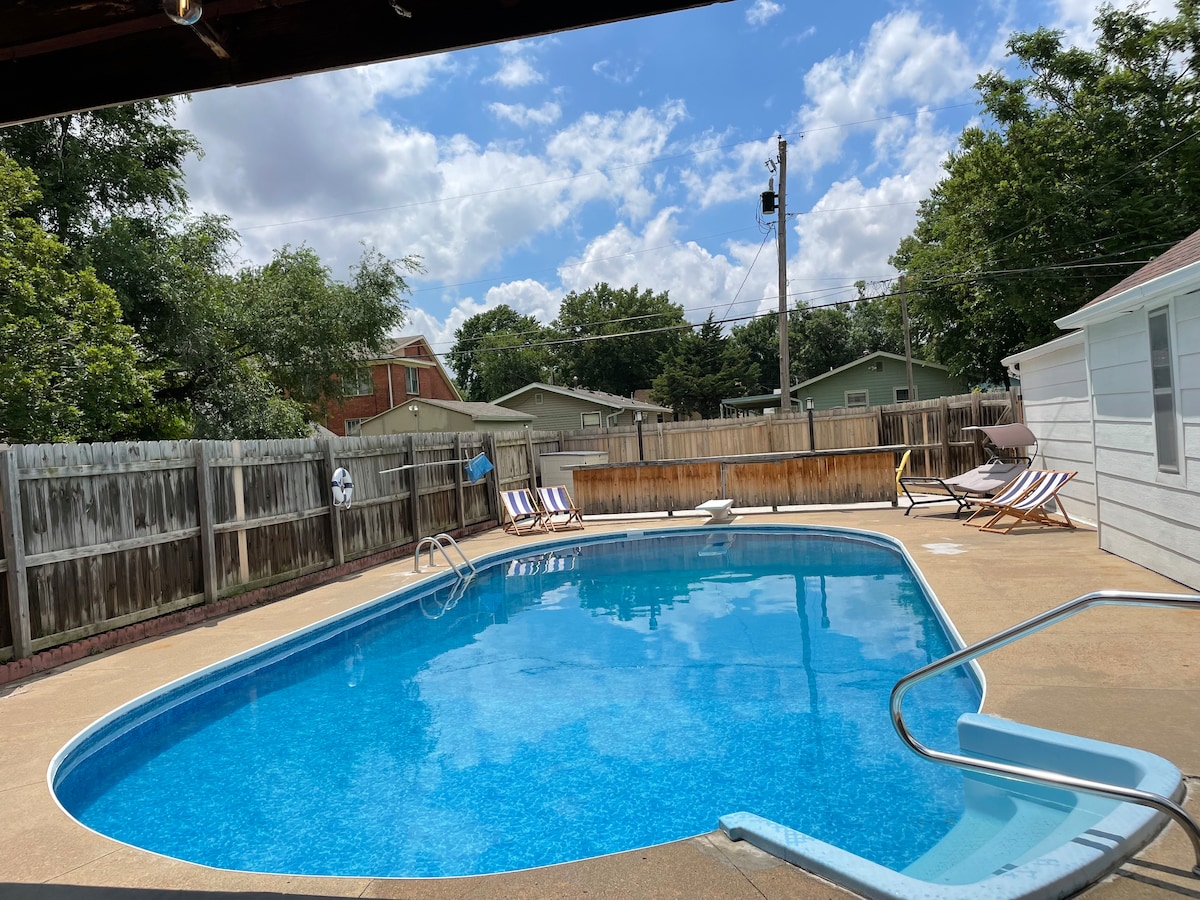 Super schoon huis met Kansas-thema in South Salina. 3 slaapkamers boven en één beneden (geen uitgang). Kamer voor het hele gezin. 5 bedden. Enorme 75inch smart-tv in de kelder met een 65-inch tv in de woonkamer boven. Omheind in achtertuin met buitenterras voor vier personen en een door propaan aangedreven BBQ-grill. Huisdiervriendelijk en de locatie is rustig. Op minder dan 1,5 km van de afslag I-135 Magnolia. Centrale locatie. Supermarkt, Central Mall & tal van winkels in de buurt van deze locatie.