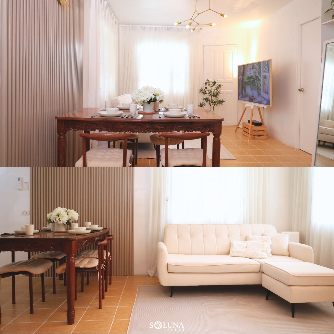 Spacious setup, perfect for family staycation, or barkada getaways. Ideal for 3-4 guests (max 2/room) Optional +1 pet dog allowed Air-conditioned rooms and common area Spacious layout with combined room access Up to +1 Additional guest: +₱300 per night Soluna is equipped with Wi-Fi, air-con, TV, shower heater, fridge, and microwave so you can relax and feel at home. Located close to CLSU, PCC, PhilMech, groceries, market, pharmacy, eateries, gas station, and 7/11
