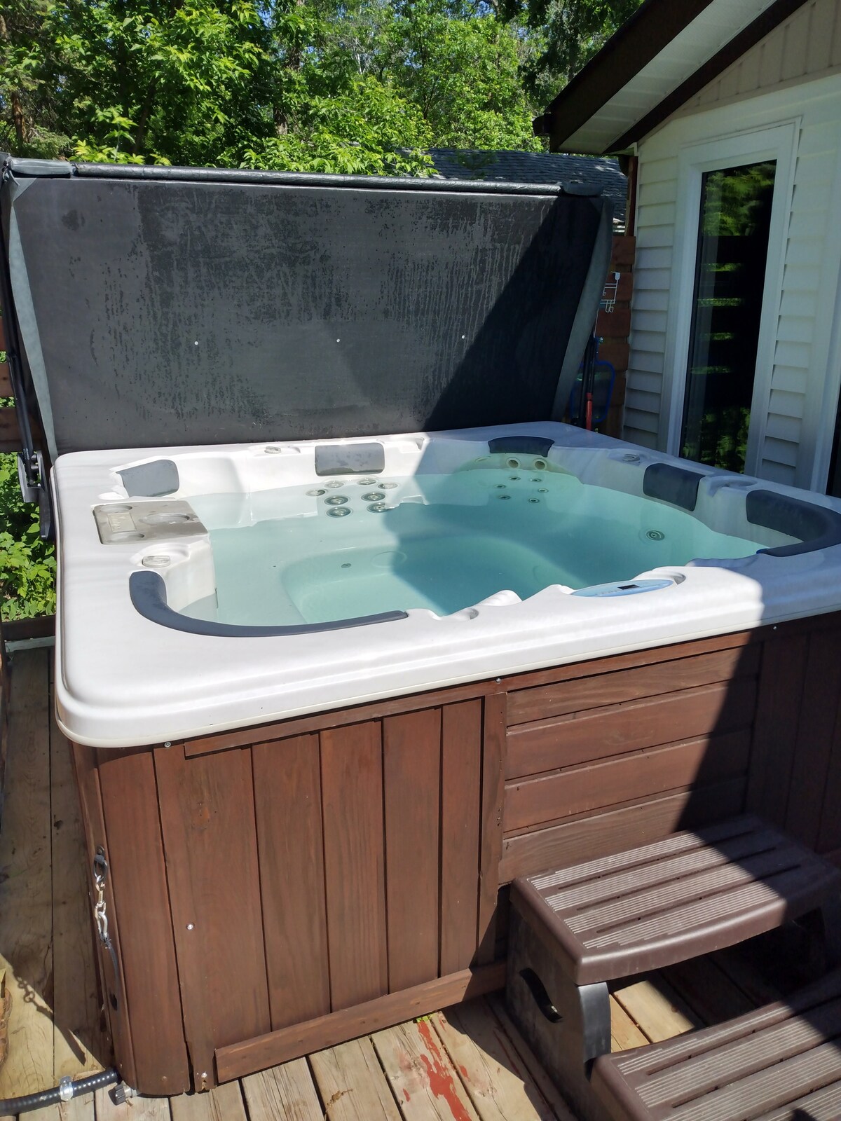 Eigen huisje aan het strand met bubbelbad / houtkachel aan het prachtige Lake Winnipeg. Twee dekken voor en achter plus een nieuw gebouwde serre zorgen voor de hele dag zon! Rustig zandstrand met veel privacy. Huis met 3 slaapkamers, 4 seizoenen houdt jou en je gasten het hele jaar door comfortabel. Aparte gefilterd drinkwater, full-size koelkast en fornuis met ingebouwde air-fryer, Weber BBQ , binnen Modern houtkachel en buiten vuurplaats zijn een paar van de meegeleverde voorzieningen.
