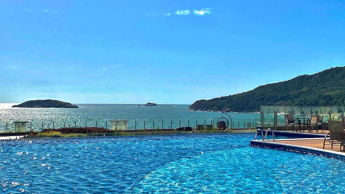 Apê de luxo c/ piscinas paradisíacas e mar
