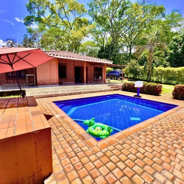 Ontsnap naar San Jerónimo! Comfortabele villa gelegen op een paar minuten van Medellin, ideaal voor middelgrote en grote groepen. Met 4 ruime kamers voorzien van hutten en ventilatie bieden wij comfort. Volledig uitgeruste keuken, kiosk met grill, eigen parkeerplaats, pooltafel, microvoetbalveld en verwarmd zwembad. Deze accommodatie wordt omgeven door de natuur en combineert privacy en sociale ruimtes voor evenementen of gezinsvakanties. Brede ruimtes, rustiek-modern design, totale privacy.