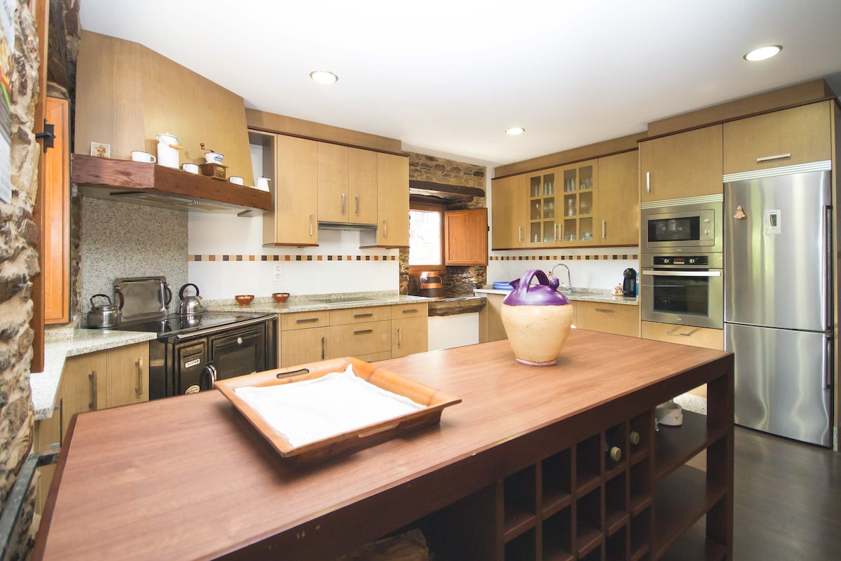 Luxe woning met 400m2, zwembad , grote woonkamers, ruime kamers, 2 open haarden en bibliotheek. Stenen schuur parkeerplaats voor 5 auto's. 3.000 m2 tuin met grote stenen bbq inbegrepen. Kantoor voor werk en filmprojector. Onlangs gerenoveerde keuken. Nationaal registratienummer ESFCTU000015013000638014000000000000000VUT-CO-0123726