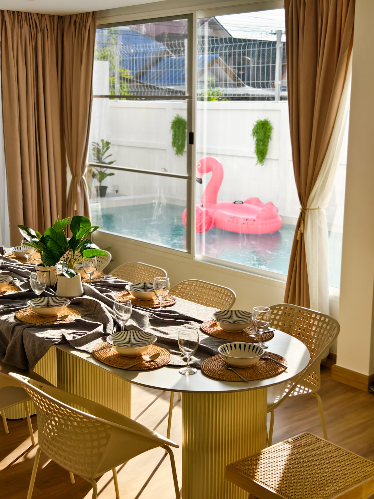 A beautiful, modern private pool villa in Chiang Mai, complete with 5 bedrooms and amazing amenities. Gorgeous mountain views, a landscaped garden and a 10 meter long pool. It's perfect for families, romantic retreats or nighttime pool parties. Full food + drink menu so you can eat on site. Lots of optional activities (+ extra cost) are available.massage,Elephant visit,... Breakfast is available on request but at an extra charge per guest will apply . ( extra charge depend on your request ) .