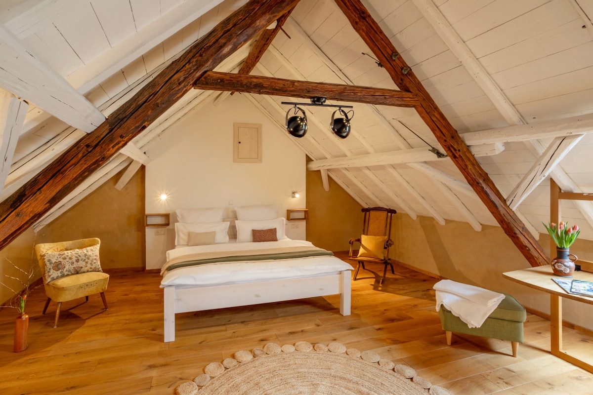 → 135 m ² stijlvol gerenoveerde schuur → Houtkachel → Sauna → Whirlpool bad met massagestralen → Volledig uitgeruste keuken → Grote woon- en eethoek → Terras met tuinmeubilair → Luifelbed op de 1e verdieping → Inchecken via slim slot → 75 inch grote smart-tv → Gratis wifi → gasgrill → Digitale reisgids → Bordspelen voor spelletjesavond → Wijnkoelkast → Kronenburg kasteelruïnes & wandelpaden in de buurt
