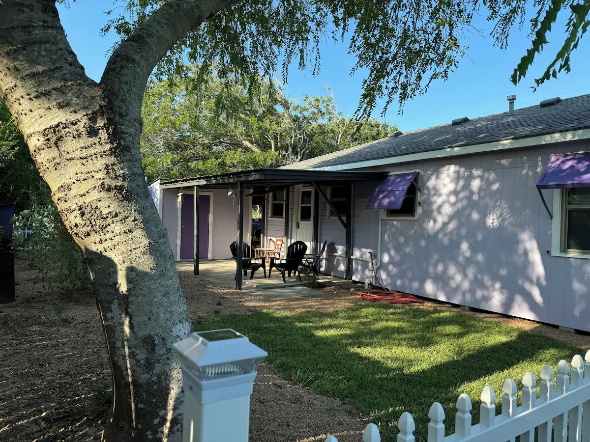 Ontspannende , rustige omgeving!Gezellig huisje met kustthema , eigen omheinde tuin, afgeschermde veranda in de buurt van Goose Island state park. Perfect voor vogelaars en wade- of kajakvissen. Trompetkranen (oktober-april) en 400 vogelsoorten migreren en leven in het gebied. Herten zwerven vrij rond. Vissen en boothellingen langs het water. Het staatspark is een rustige wandeling. Rockport op een korte 9 mijl, mooie rit. Geen hangmat op dit moment.