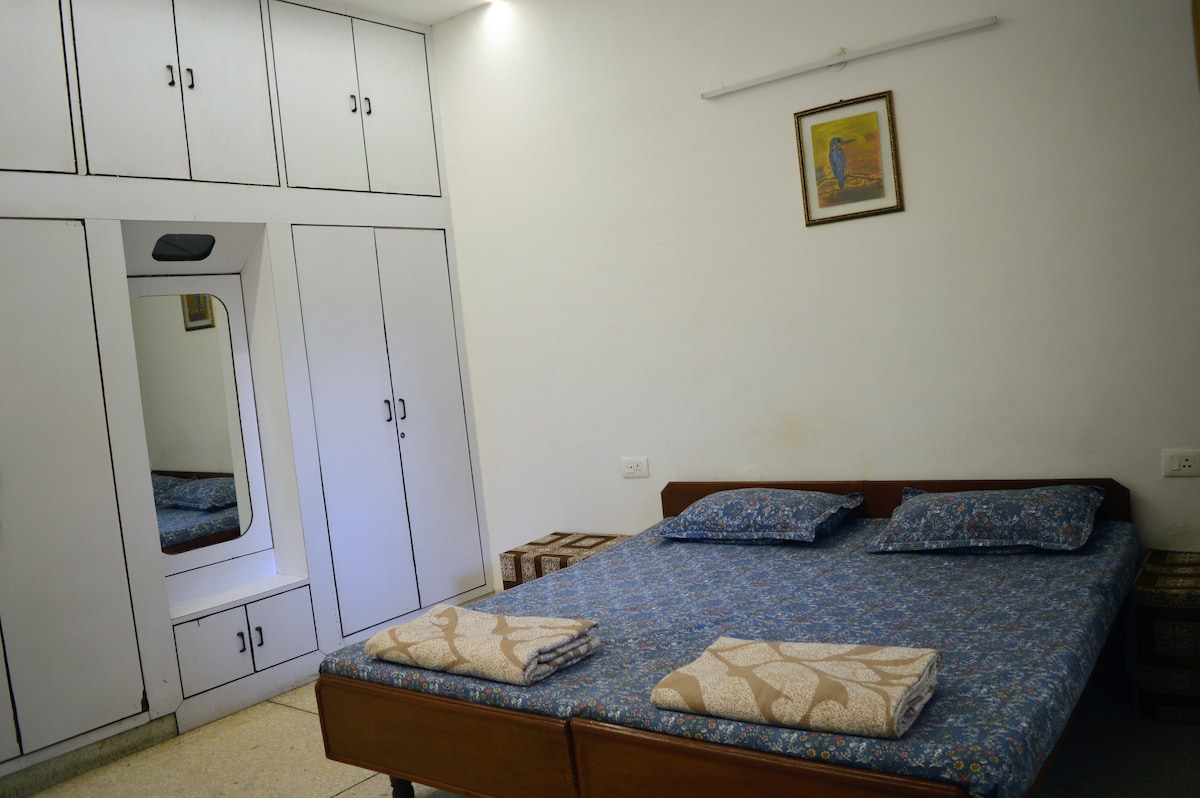 Dit open studio-appartement volgt minimalistische ontwerpprincipes. Uitgerust met een kitchenette, twee badkamers, een groot kingsize bed, een queensize bed aan de muur, een tv met Netflix, Hotstar, PrimeVideo, JioCinema en gratis WiFi, is deze ruimte in staat om comfortabel een gezin van vier te ontvangen. LET OP: Dit is een open appartement en er zijn geen privéslaapkamers, het appartement bevindt zich op de tweede verdieping, dus je moet twee trappen op. Geen FEESTEN ALSJEBLIEFT 🙏🏽 EN niet ROKEN 🚭