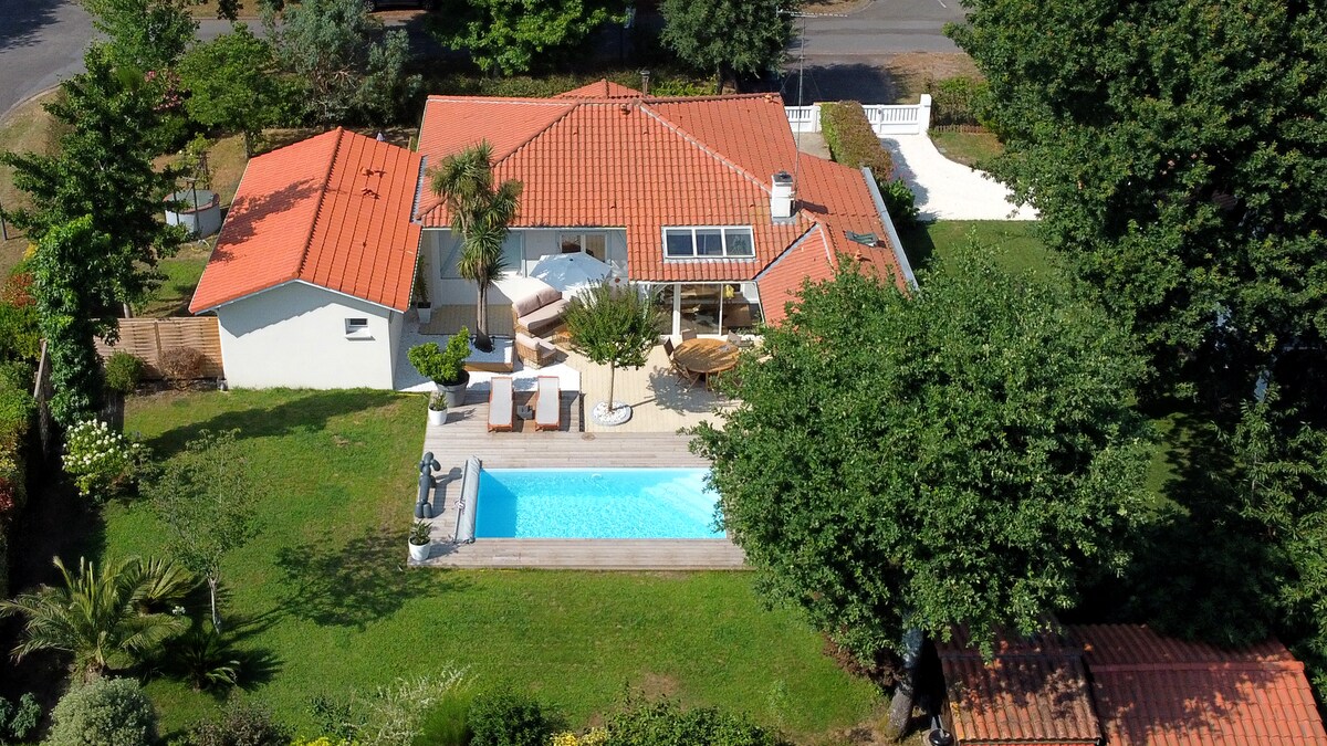 Grote en mooie nieuwe villa voor 8 personen gelegen op de bodem van Lake Hossegor, tussen meer en oceaan. Je zult genieten van de rust, de tuin, het verwarmde zwembad van de feestdagen van april tot eind oktober, het prachtige terras met eethoek en het ontspanningsgedeelte. De nabijheid van het meer en de oceaanstranden maakt het een perfecte verhuur. Meer op 50 m en Océan (Plage des Estagnots) op 300 m. Grote lichte woonkamer met uitzicht op tuin en zwembad