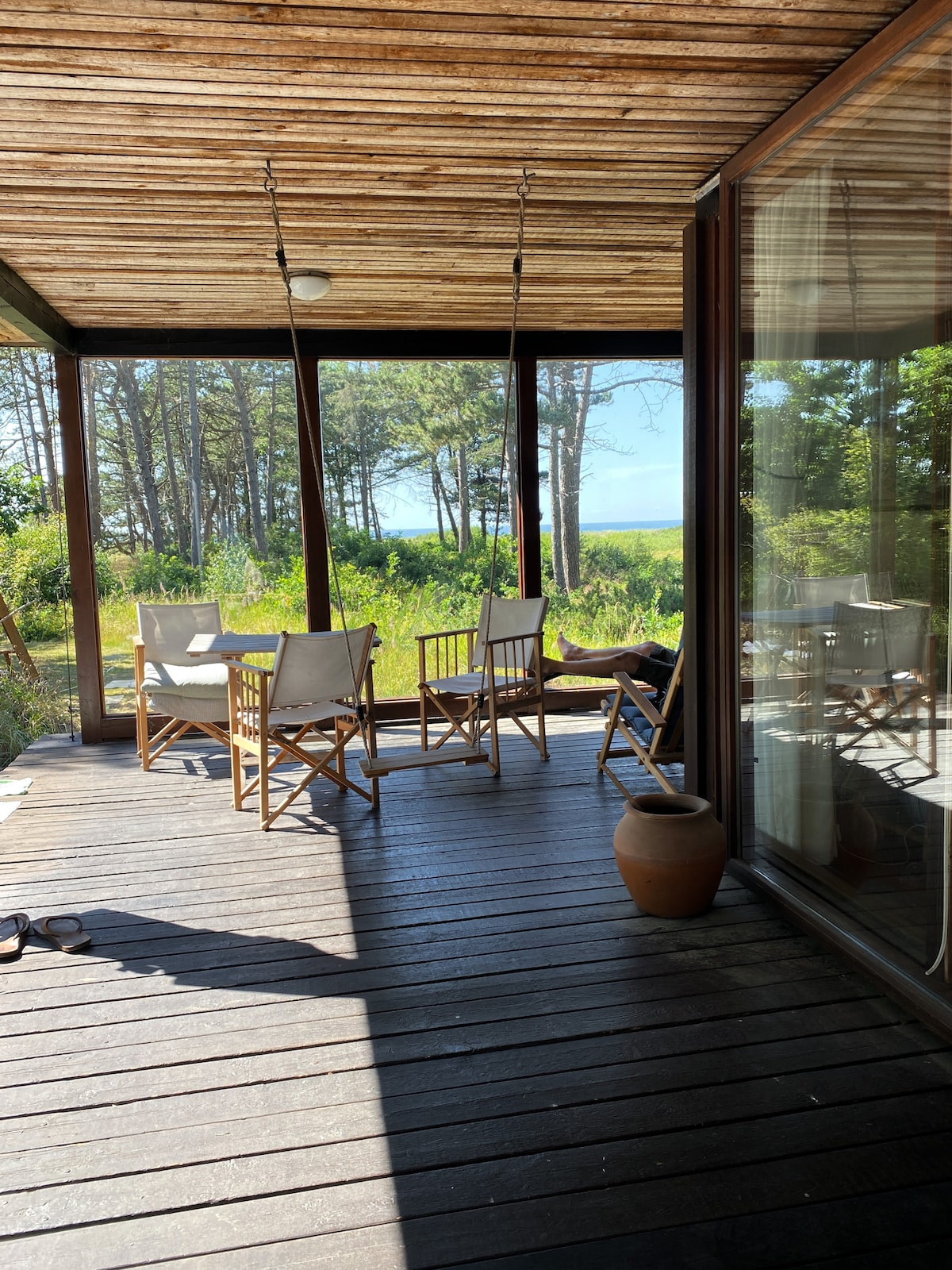 Een droomparel die privé in de dennenbossen ligt, op slechts een paar stappen van de oceaan en onze prachtige panoramische oceaansauna. Het huisje is gemakkelijk te verwarmen met de geweldige kleine houtkachel en goed geïsoleerd. Je vindt de uitgeruste keuken en badkamer in het faciliteitshuis ernaast. Het faciliteitshuis heeft een gezellige verwarmde keuken en woonkamer. Het is bereikbaar met de auto, directe bus of openbaar vervoer vanuit Kopenhagen en Aarhus 1,5 uur. Voel je vrij om YdreLand op te zoeken voor meer informatie.