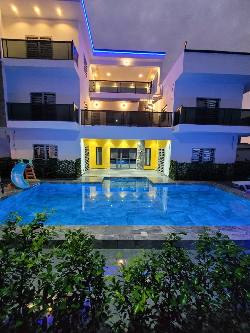 Cet hébergement élégant est parfait pour vos séjours c’est très bien sécurisé et discret surtout pour ce qui vienne en mission ou séminaire A quelques mètres de Magig Land 5 minute de la ville juste sur la corniche 3minutes de Radisonne, Terrou Bi et de sea plazza