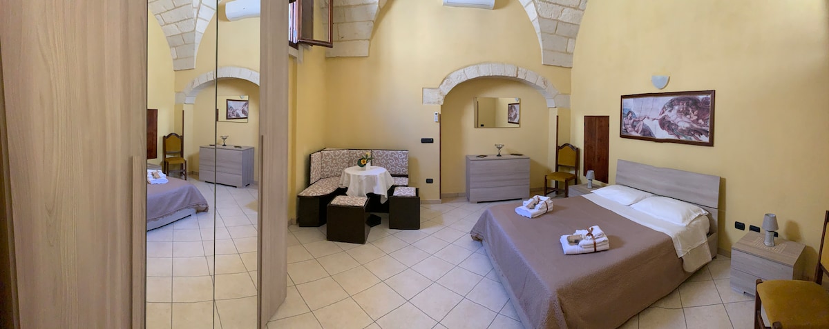 Il complesso è parte di una antica masseria ristrutturata dall' Architetto Luca Zanaroli. L'appartamento si trova nel cuore del centro storico di Patù, antistante la storica Piazza Indipendenza a pochi minuti dal mare e dai maggiori centri d’interesse storico e culturali. Informiamo la nostra gentile clientela che nella nostra struttura è presente il rilevatore di gas combustibile ed è igienizzata e sanificata seguendo le linee guida del Ministero della Sanità.