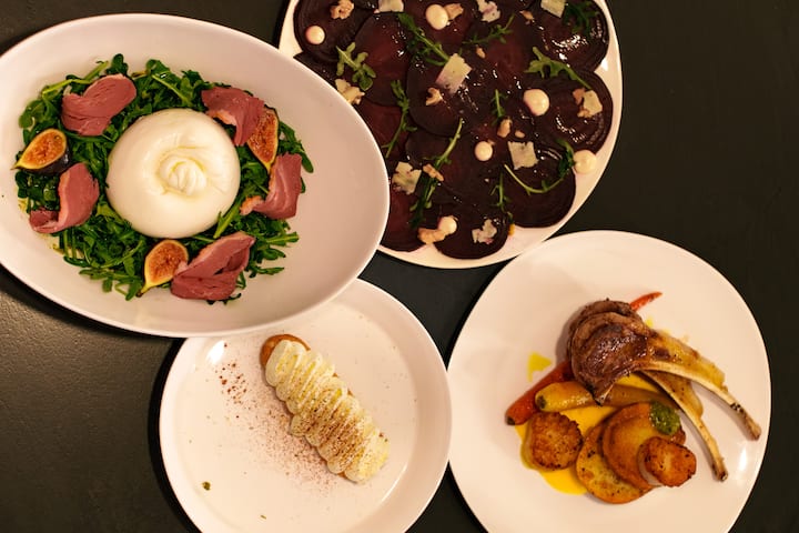 Geniet van een zorgvuldig samengesteld menu met verfijnde maar toegankelijke gerechten, waaronder verse vis en schaaldieren, handgemaakte pasta en gedurfde Italiaans-mediterrane smaken, voor een evenwichtige en elegante eetervaring.