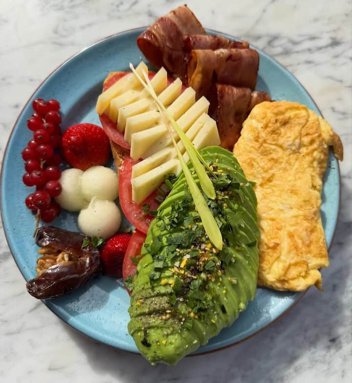 Eggs Benedict, avocado toast, tostada con tomate y jamon serrano, tarta caseras, muffins, vers fruit, Franse tortilla, croissants, wentelteefjes en een selectie van drankjes en verse sappen, evenals cappuccino koffie en vele andere variëteiten