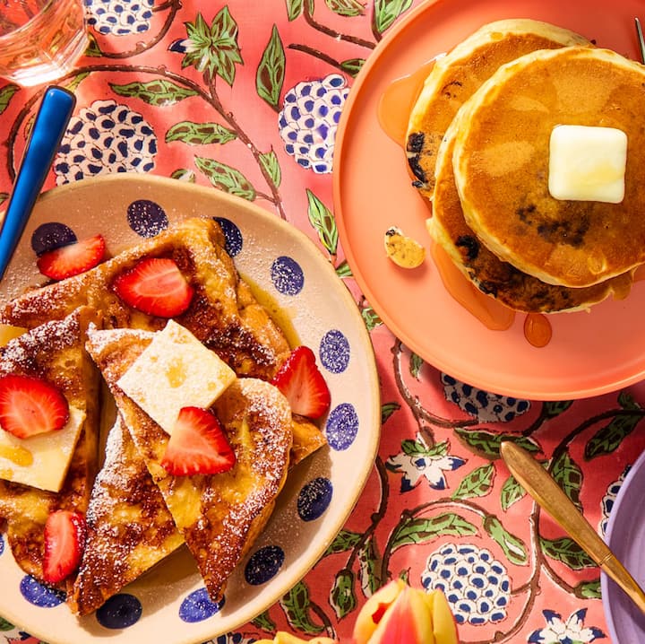 4 maaltijden. Geniet van een duo van zoete klassiekers, met Blueberry Ricotta Pancakes (luchtige ricottapannenkoeken met zure bosbessen en tijmahornsiroop van chef-kok John DeLucie) en Brioche French Toast (custardy briocheplakjes met bessencompote en opgeklopte mascarpone van chef-kok Cedric Nicolas). Inclusief 2 van elke maaltijd.