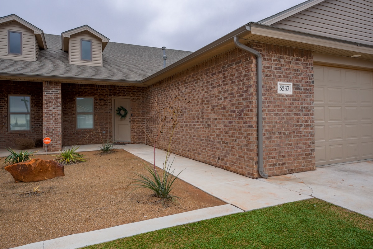 Verblijf in onze nieuw gebouwde, mooie Lubbock-woning. Handige toegang tot Texas Tech, fantastische restaurants en de medische wijk. Alles fris en nieuw! Geniet van de open keuken met roestvrijstalen apparatuur. Slaap comfortabel in de Master King Suite of queensize slaapkamer met aangrenzende badkamer en geniet van onze 55inch smart-tv 's. Geniet van het samenkomen in onze woonkamer met open concept om te koken, te dineren en te ontspannen. Deze comfortabele ruimte heeft een 65-inch smart-tv en biedt nog drie slaapplaatsen.