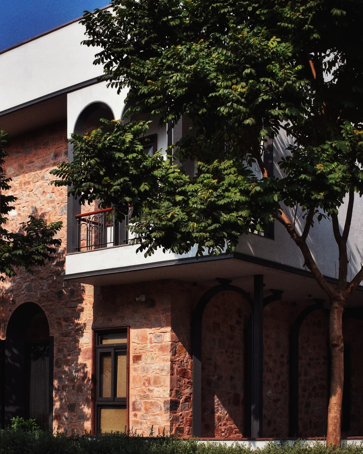 Nestled in a quiet residential neighbourhood in Jagatpura, Aarrunya is a perfect choice for family staycations, cosy honeymoons, relaxing holidays with friends, and contemplative solo retreats. Its modern rustic design is evident in the exposed brick walls and large east-facing windows, which suffuse the house with brilliant natural light. In the fragrant lawn, Cabbage white butterflies flit about the newly-planted cherry trees, and cheerful birdsong can be heard throughout the day.