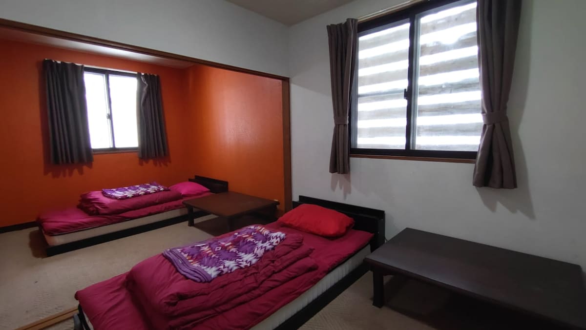 Winter - Sneeuwseizoen: ★ Akai Tobira Lodge ligt op 620 m binnen het skigebied op Mt. Kosha. ★ Rechtstreekse toegang tot de pistes van het skigebied 'Romance no Kamisama'! ★ Basistarief dekt maximaal 2 personen per kamer (met futonbeddengoed). ★ Extra kosten van toepassing voor 3 of meer gasten per kamer. Lente/zomer/herfst - Groene Seizoen★: Auto-camping en BBQ-site beschikbaar. Let op: Kamer 101 (1e verdieping) heeft geen toilet op dezelfde verdieping. Gebruik het gedeelde toilet op de 2e verdieping.