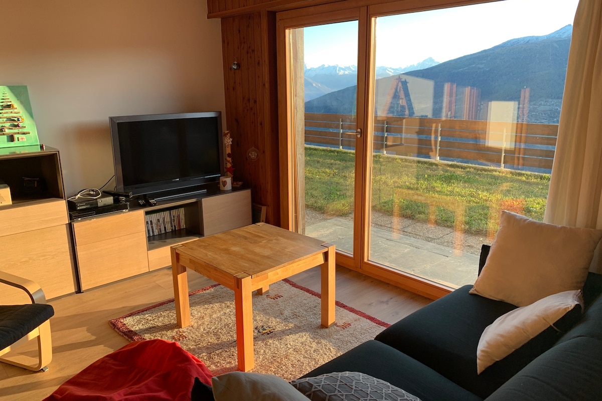 Located at 1700m alt, Chalet Lumière is tucked against a hillside with an untouched forest in the back and a panoramic open view on the Eringer valley and the Bernese alps at its front. Watch the sun rise or set on four 4000 peaks, including the Matterhorn and the Dent Blanche. Chalet Lumière is in the quiet and safe resort of Thyon Les Collons, which is the entry to the famous 4 valleys skiing sector and it is close by to the medieval town of Sion.