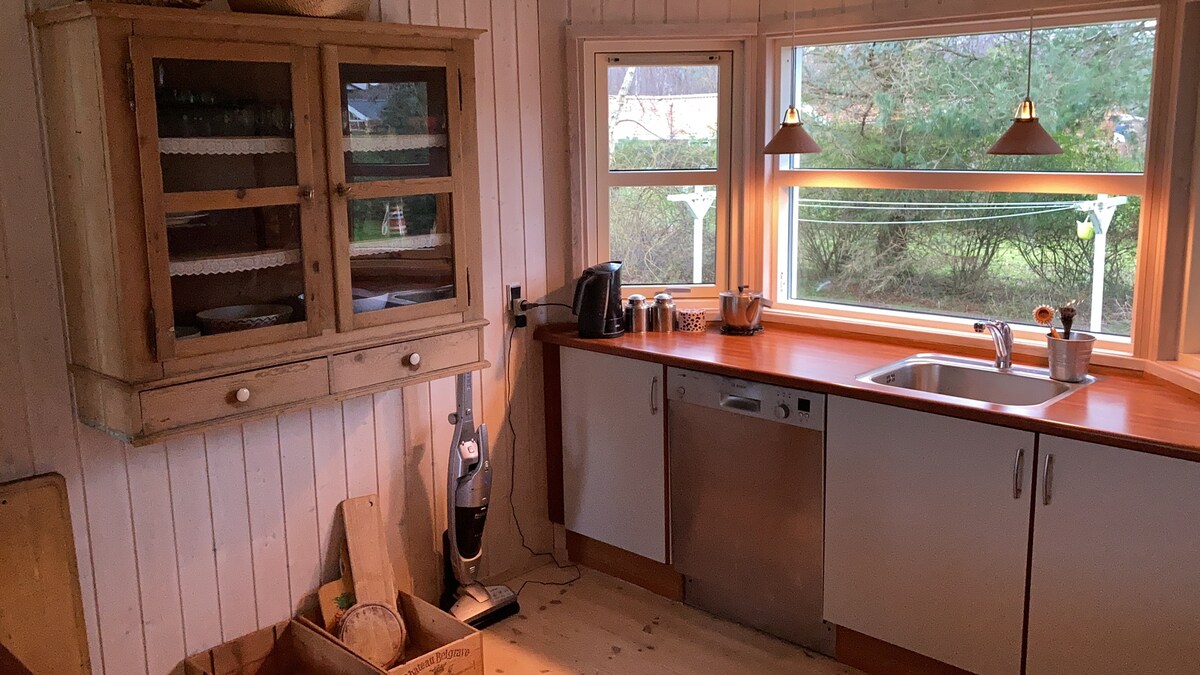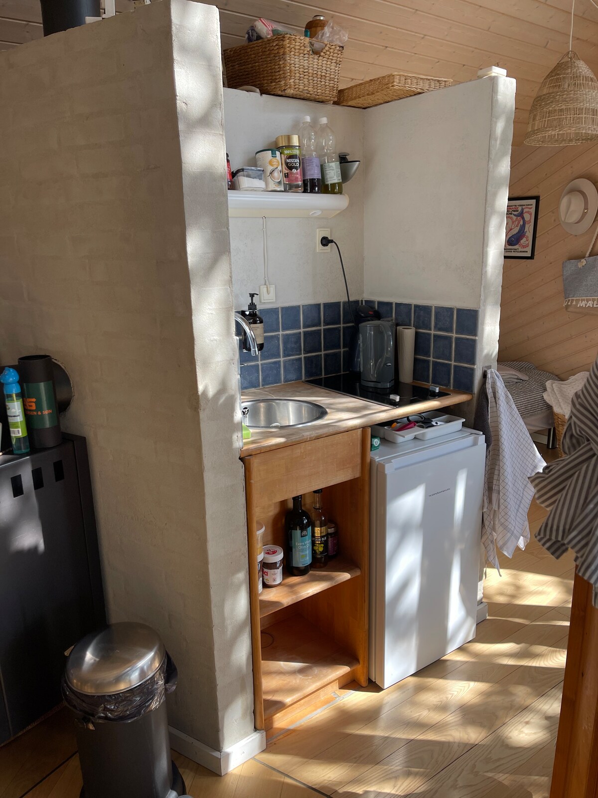 Een charmant drietal woning, prachtig gelegen aan de rand van Skafterup en aan de weg naar Bisserup, waar zich een zandstrand en een lokale gezellige haven bevindt. Een appartement van 80 m2 met open woonkamer en keuken, houtkachel en directe toegang tot de tuin. Focus op duurzaamheid met onder andere gerecyclede meubels. Het pand is gerenoveerd met respect volgens de oude principes - ramen van kernhout (1809) geschilderd met lijnzaadolie, vakwerk met deuvels, papierwolisolatie, rieten dak, enz. Afval sorteren en recyclen is ook belangrijk