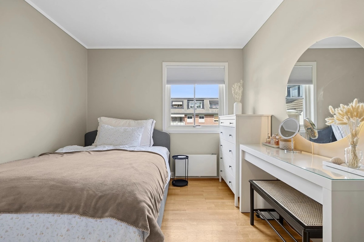 Op deze plek kun jij of je gezin dicht bij alles blijven, de locatie is centraal midden in het centrum van het centrum van Skien. Het appartement is 47 m2 groot en bevindt zich op de 1e verdieping. Het heeft een zonnig ruim terras vanuit de woonkamer en een ongestoord terras aan de achterkant bij de ingang van het appartement