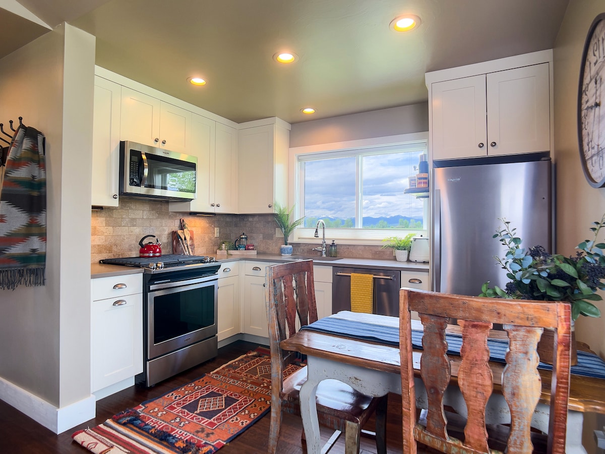Welkom in The Silo. Zodra graanopslagbakken op een werkende melkveehouderij zijn deze twee silo 's opnieuw gebruikt in een gloednieuwe woonruimte met twee verdiepingen in het hart van de Bitterroot Valley. Drie van de vier oorspronkelijke generaties maken nog steeds hun huis op deze locatie, die is overgestapt van een fulltime melkveebedrijf naar een verhuurderswoning. Acres waarop je kunt rondlopen met je hond zonder riem (toeslag voor huisdieren), een vijver druk met vogels en beestjes, een ongelooflijk landschap en heerlijke kleine steden langs Hwy 93 wachten op je!