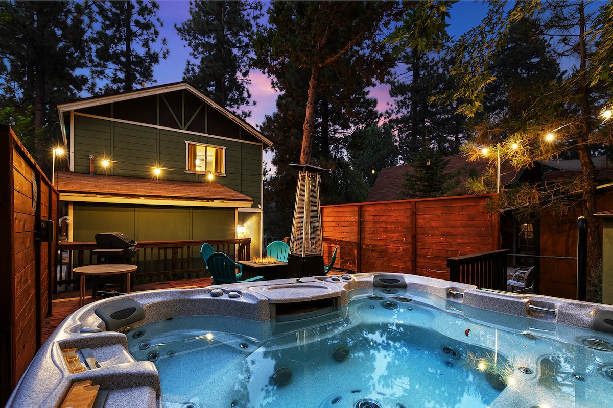 ☀ Je zult genieten van deze charmante hut met moderne luxe en handgemaakte meubels ontworpen voor de ultieme bergervaring. Perfect voor gezinnen en wereldreizigers op slechts enkele minuten afstand van skigebieden, wandelen, fietsen, golf en het meer. Hot Springs Spa, smart-tv 's, centrale airco/verwarming, ultrasnelle wifi, barbecue, spelletjes en nog veel meer. Je bent in de buurt van: - Bos, wandelen, fietsen, paden - 1 blk - Ski Shuttle, Trolly - 2 blk - Bear Mountain - 3/4 mijl - Snow Summit -3/4 mi - Big Bear Village - 1 mijl