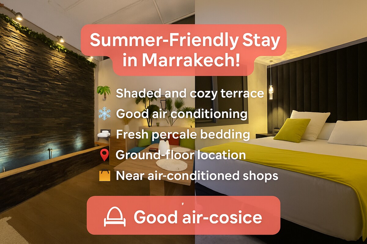 Discover the perfect mix of modern comfort and authentic Moroccan charm in our stylish apartment, located in the quiet Nour Prestige Residence just minutes from Marrakech’s vibrant Medina. Ideal for couples, families, or remote workers looking for a relaxing stay with easy city access. ⚽ Visiting for the Africa Cup 2025? We’re just 15 minutes by car from the stadium — with a 🌟 special weekly discount 🌟 for Our guests!