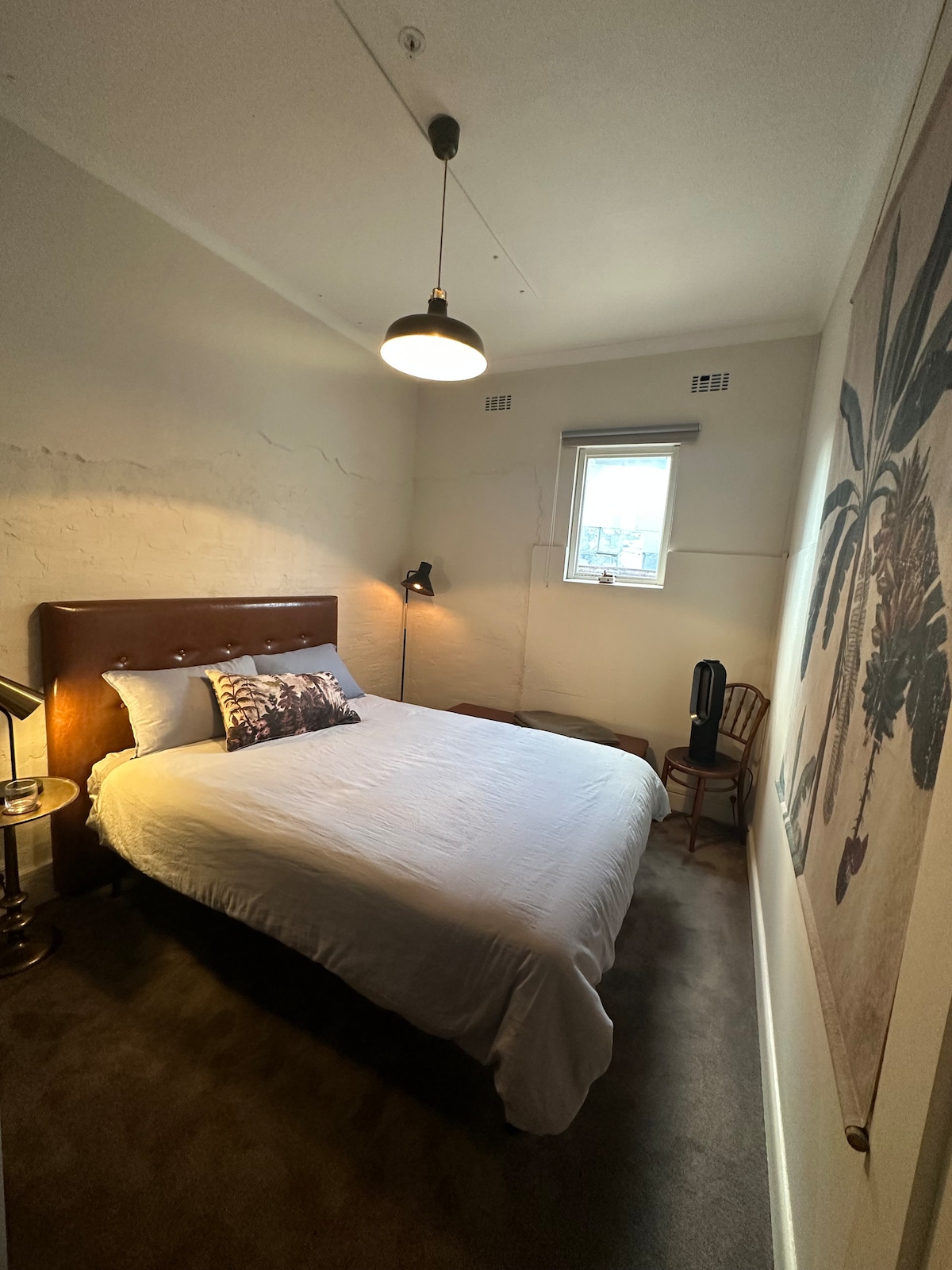Cosy light-filled room with ensuite bathroom. The room is located upstairs, in a secure, private residential area of the pub. The room is equipped with all the essentials including: double bed, mini-fridge, kettle, toaster and tv. It is located just a short stroll from Lygon St and close to cafes, shops, and public transport. As the room is located above a pub and on the city fringe, there may be some noise at night, please keep this in mind when booking.