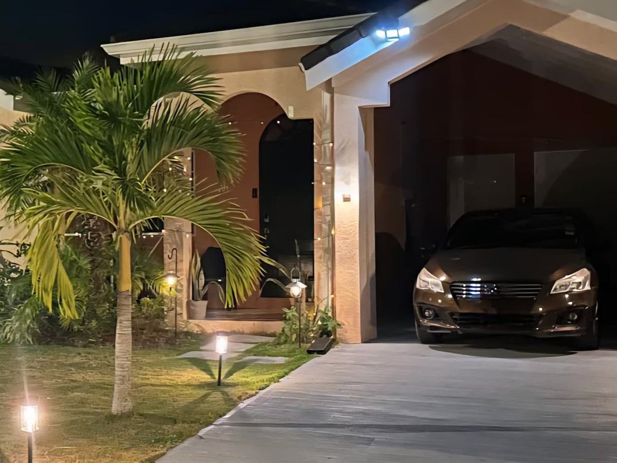 Welkom bij Ty's Luxury Villa, een stijlvolle villa met 2 slaapkamers en 2 badkamers op slechts enkele minuten van het hart van Ocho Rios. Elke slaapkamer heeft een bed in hotelstijl, een eigen badkamer en airconditioning. De open woonkamer heeft een complete keuken en een smart-tv. Buiten kun je ontspannen bij de fontein, filmavonden organiseren met de projector of grillen aan de bar. Gasten kunnen ook genieten van het gedeelde zwembad en het clubhuis. Deze plek is zorgvuldig ontworpen voor comfort en is de perfecte plek om te ontspannen of de noordkust van Jamaica te verkennen.