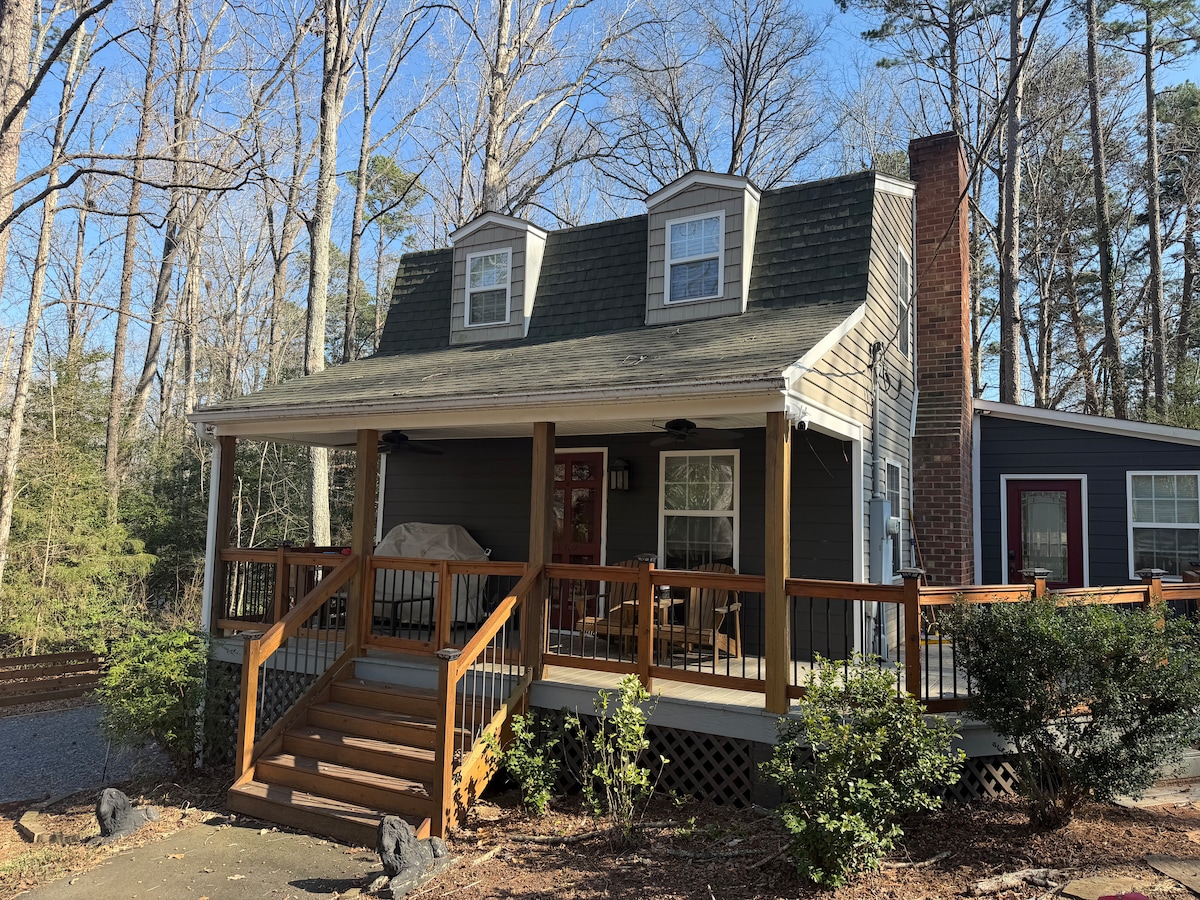 Welkom in onze charmante boerderij genesteld in het adembenemende Uwharrie National Forest! Dit volledig gerenoveerde juweeltje ligt op een uitgestrekt terrein van 44 hectare en biedt een serene ontsnapping. Met 3 gezellige slaapkamers is onze boerderij comfortabel geschikt voor gezinnen en kleine groepen die op zoek zijn naar een rustig toevluchtsoord. Het interieur is zorgvuldig ontworpen, met moderne voorzieningen en rustieke charme die naadloos op elkaar aansluiten. Drie smart-tv's en glasvezelinternet zorgen ervoor dat je verbonden blijft. Schommelbed, wandelpad!