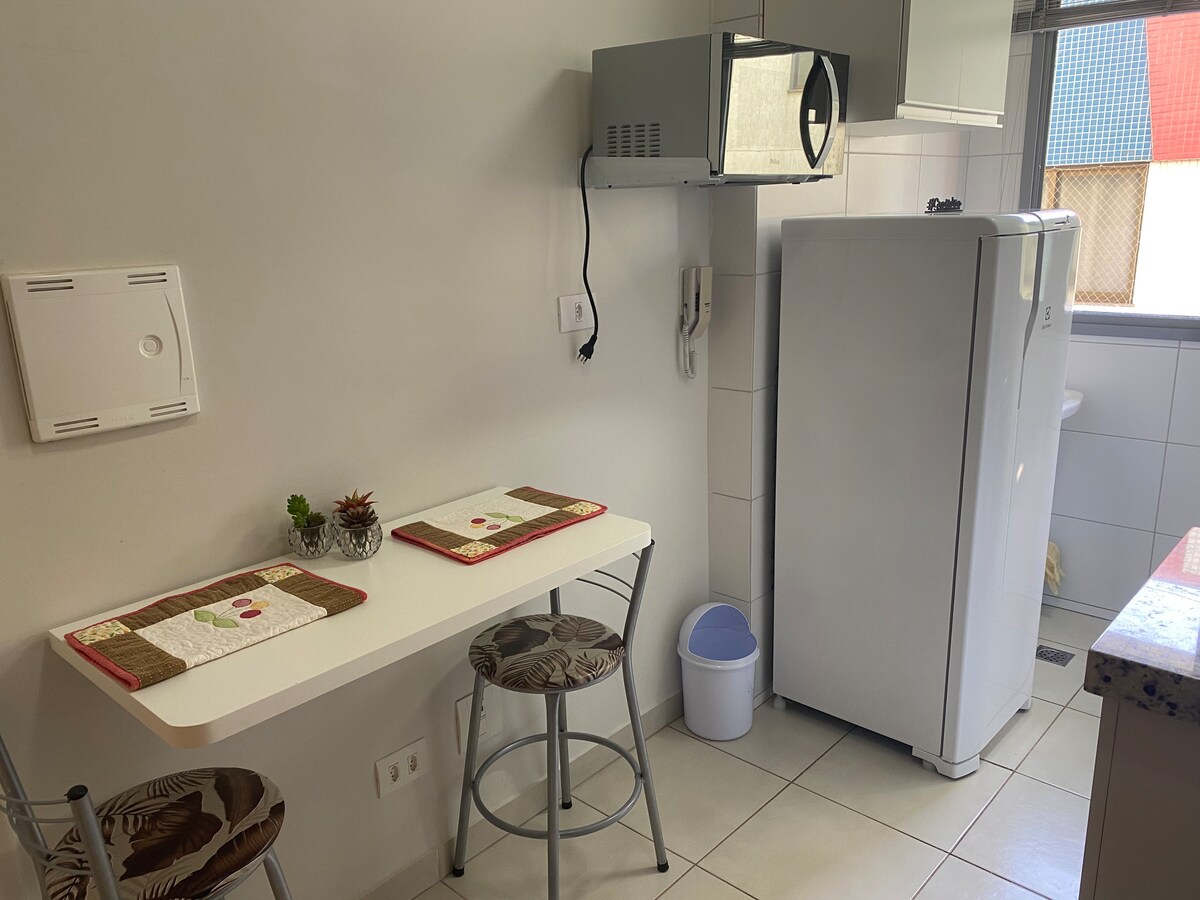 Refrigerador de 02 Portas Electrolux Frost Free com 382 Litros Painel Blue Touch Inox e Cinza. - DF42X (INOX, 110V). Micro-ondas Electrolux MI41S 31 Litros Cinza 110V Cooktop Fisher. Cama Box Casal Maxflex Serie Premier Luxo. TV 43" Samsung Smart TV com NetFlix. Máquina de Café Nespresso. Chaleira Elétrica. Liquidificador. Amplo armário com espelho na porta. Banheiro com Box e prateleira com espelhos. Cortina tipo Romana Dupla. Apto com Sacada pra vista a Serra do Mar. Internet. Sofa Cama