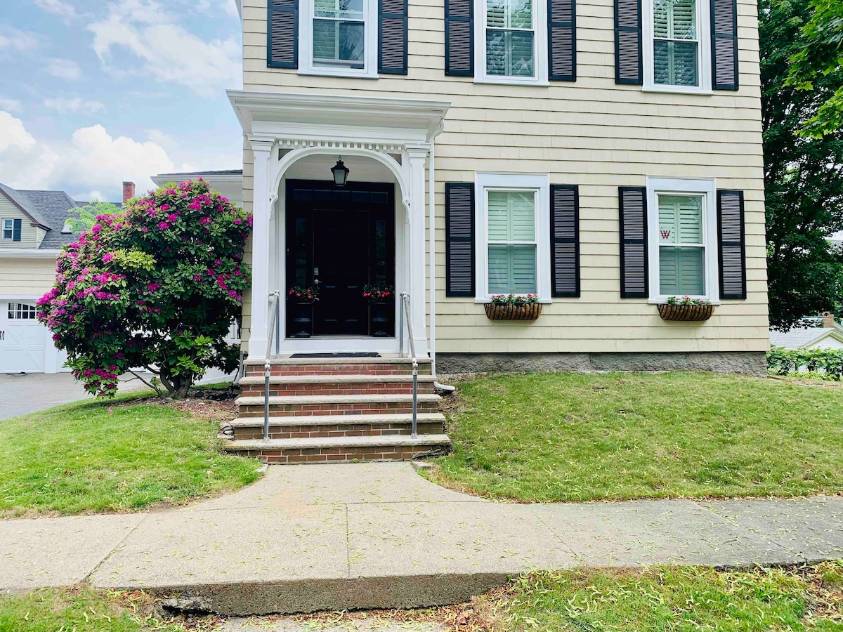 Grote keuken (met s.s. apparaten en alle voorzieningen), serre, eetkamer, flatscreen smart-tv 's in de woonkamer en afgewerkte kelder, snelle wifi (1 gig) en wasserette. Veel ramen maken het licht. De openslaande deuren openen naar een dek van 16x16 dat leidt naar groot omheind in de tuin. Huis is goed voor koppels, zakelijke reizigers, gezinnen, vrienden en huisdieren. Dicht bij het centrum, trein ligt op vijf minuten lopen, snelwegen, Lake Quannapowitt, Breakheart, 9 mijl naar Encore Casino en <15 mijl naar Boston & Salem.