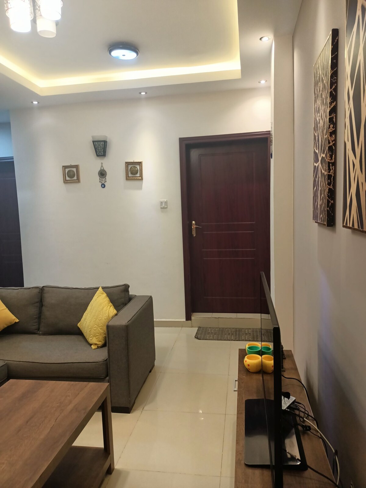 - Zeer beveiligde buurt met geheime dienst hoofdkwartier op 2 minuten lopen van Villa *Betaald bewapend personeel dat het pand 24/7 beveiligt *Camera 's kijken 24/7 vanuit alle richtingen naar het pand - Wifi beschikbaar - Kafori staat bekend als de buurt nr. 1 in heel Soedan, aan al je behoeften wordt voldaan met slechts 5 minuten met de auto. - Luchthavenvervoer aanwezig - Cheef is beschikbaar op verzoek - 24/7 ondersteuning is beschikbaar in elke vorm van nood of nood