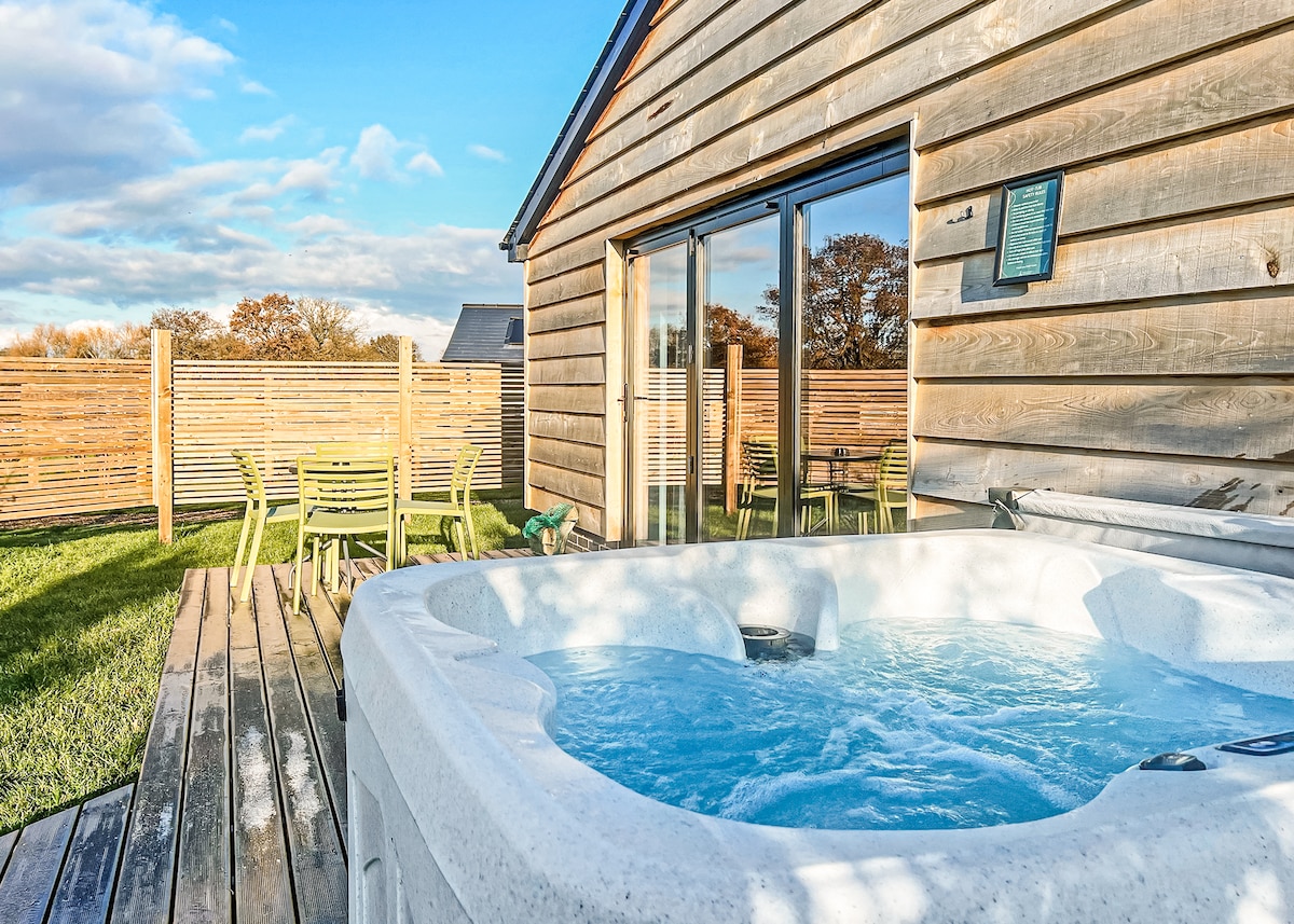 Ontspannen in de luxe Beachcomber hot tub op het zonneterras op het zuiden terwijl je geniet van de privacy van je eigen afgelegen tuin. Rol de tweevoudige deuren terug terwijl je ontspant in de schaduw van de lodge. Ontdek onze mooie lokale dorpen en landweggetjes. We hebben slechts vier van deze handgebouwde lodges op het terrein van ons landhuis en het zijn speciale gebouwen voor onze speciale gasten, van wie velen terugkeren. Volledig uitgeruste keuken voor self-catering, kingsize bed, buiten ligstoelen.