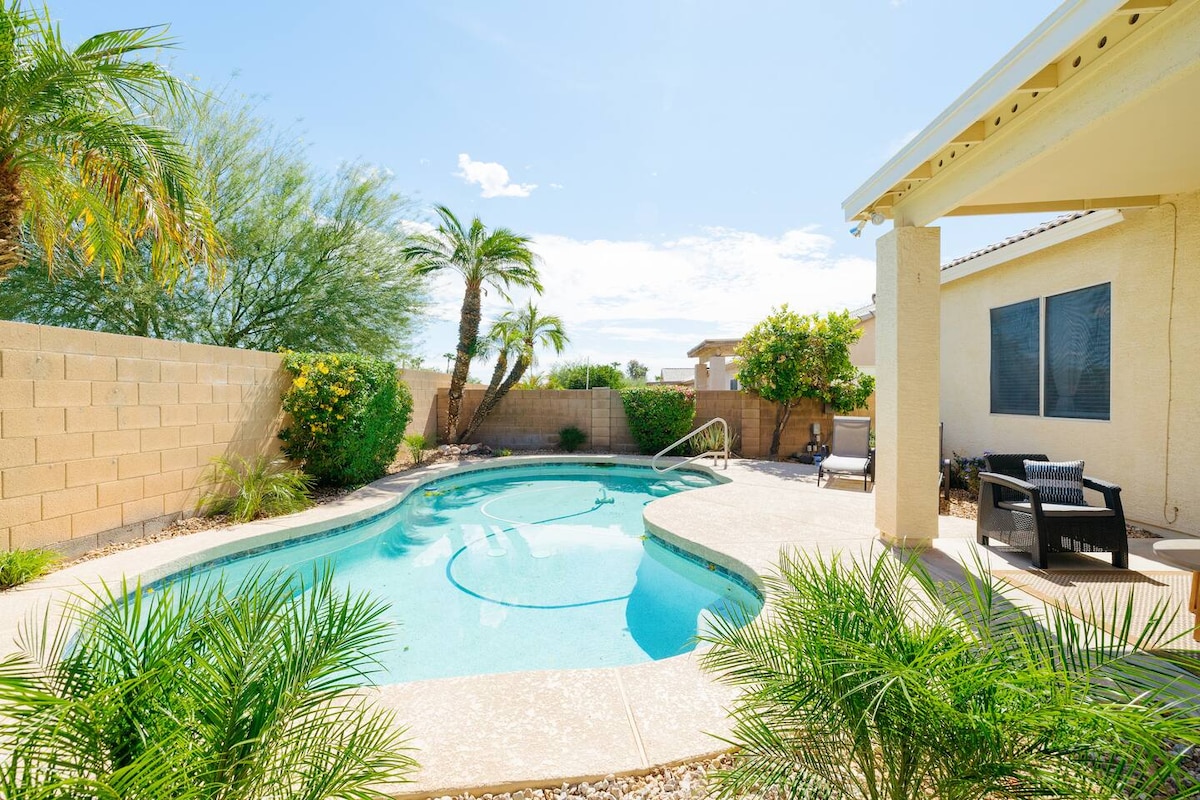 Ontspan en kom tot rust in deze rustige, stijlvolle ruimte. Geniet van comfortabele fauteuils en banken of ontspan bij het zwembad en de schaduwrijke patio. Dit huis is perfect voor veel ervaringen! Kom en ontspan op een gezinsvakantie, gebruik dit als uitvalsbasis voor je Lake Pleasant-avonturen, of geniet gewoon van de zon! Als je op zoek bent naar een plek om te verblijven tijdens een golfexcursie of tijdens het bijwonen van de lentetraining, ligt ons huis op een geweldige locatie voor je volgende uitje.