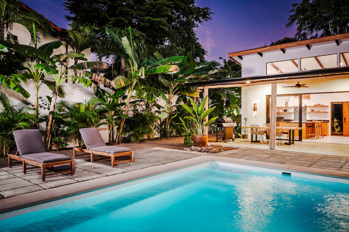 Discover luxury in Playa Grande, Costa Rica! Our stunning retreat features 4 all-suite bedrooms for ultimate comfort and privacy. Enjoy spacious interiors, a gourmet kitchen, and a full outdoor kitchen with a grill, griddle & ice maker—perfect for unforgettable dining. Relax by the pool or soak in breathtaking sunsets from the beach. For your convenience, a six-seater golf cart is available for rent on-site, making it easy to explore. Experience the perfect blend of adventure and tranquility!