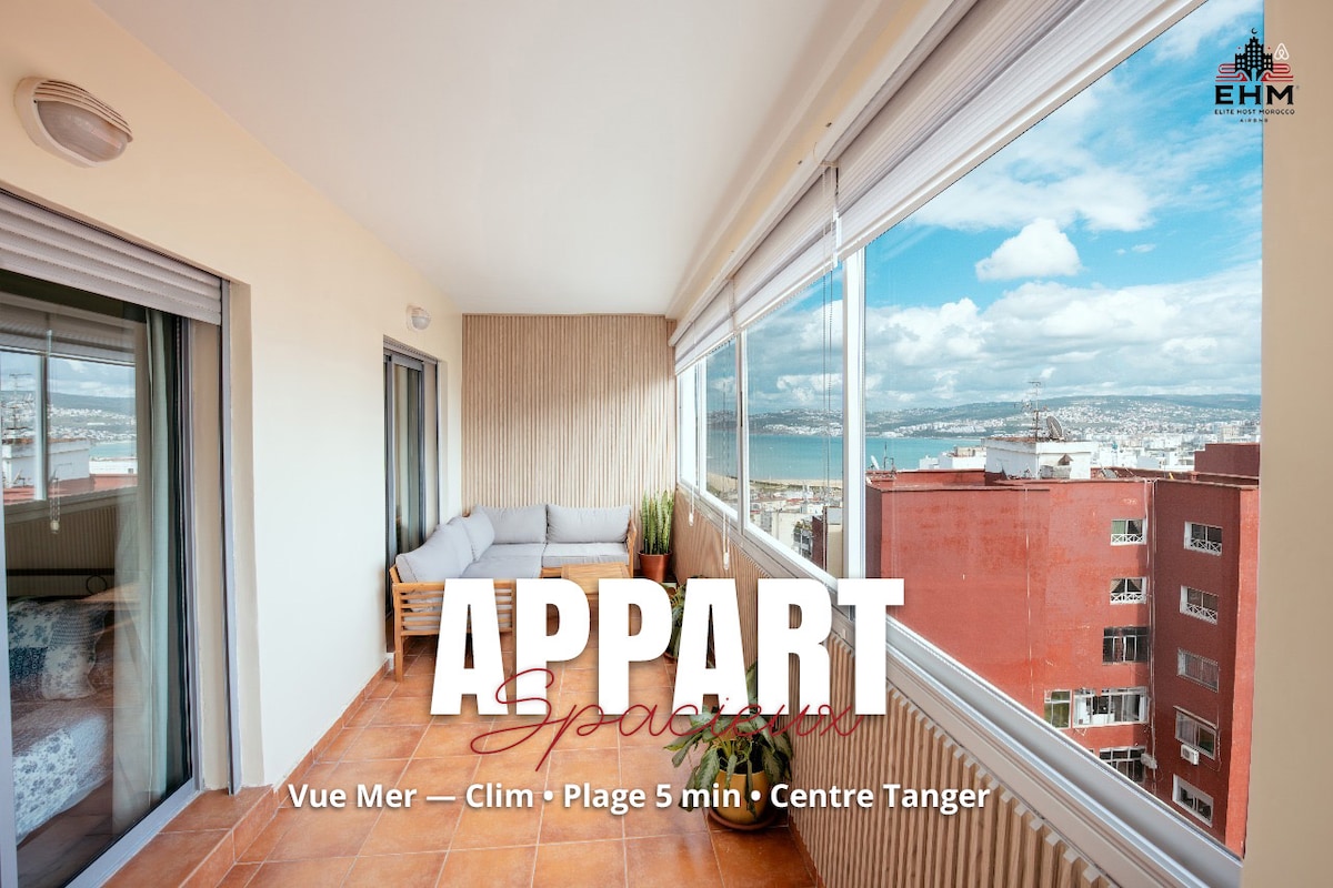 Word wakker met het geluid van golven en een prachtig uitzicht op de Middellandse Zee, de baai van Tanger en zelfs Spanje. Dit 2BR appartement aan zee in het gewilde Malabata biedt een panoramisch uitzicht vanuit elke kamer, terrassen, directe toegang tot het strand, een complete keuken, een smart-tv, snelle wifi, airconditioning en omheinde parkeerplaats. Slechts 5 minuten lopen naar cafés, Villa Harris Park en Mogador Hotel. 11 minuten naar de Grand Socco. ⚠️ Gelegen op de 1e verdieping (60 treden van de garage), geen lift. 👶 Babybed en kinderstoel beschikbaar op aanvraag.