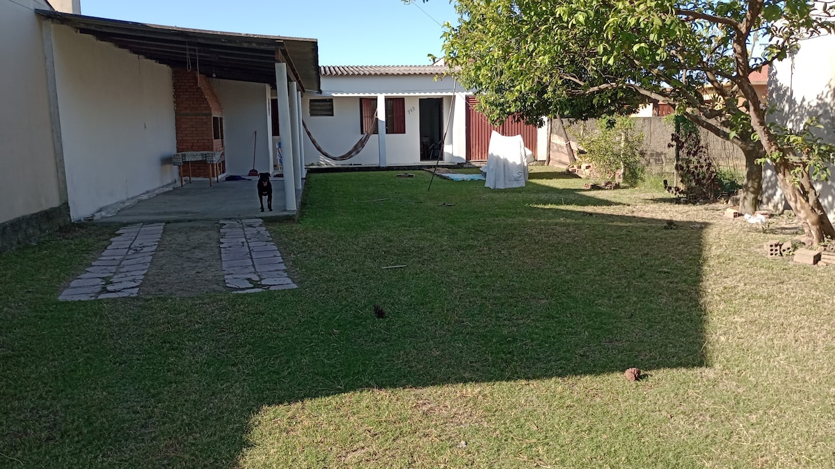 Leve toda a família a este ótimo lugar com muito espaço para se divertir. Casa com peças amplas, garagem para dois carros coberta, com churrasqueira, pátio fechado e amplo, possibilidade de mais dois carros estacionados no pátio. Quarto com suíte e ar condicionado. Banheiro social com chuveiro. Cozinha equipada e com fogão campeiro. O endereço é Rua dos abacateiros, 5, Bairro Pontal