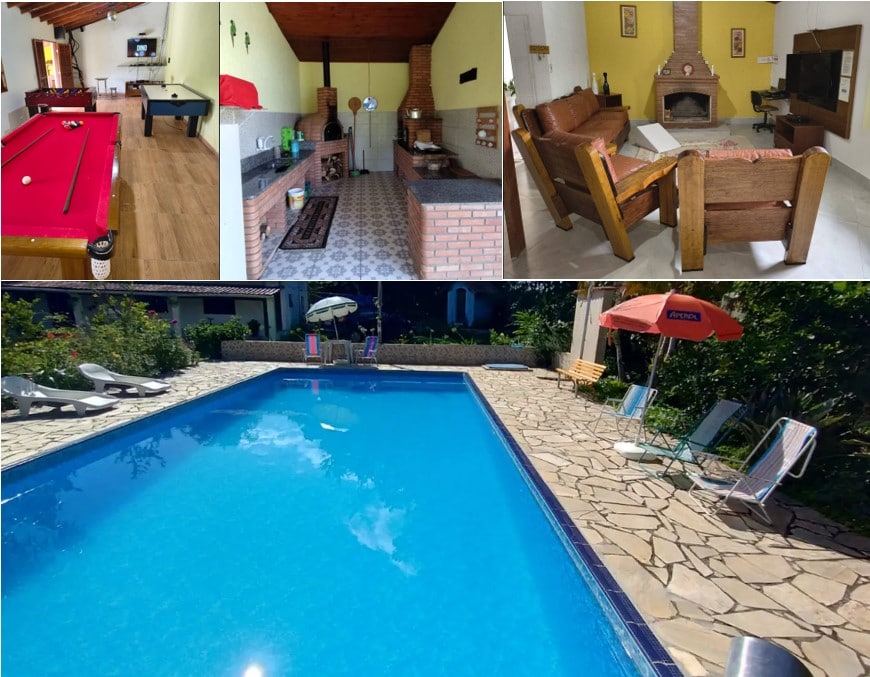 Chácara Roseira ligt in Piedade, op slechts 1: 30 minuten van São Paulo en heeft verschillende voorzieningen voor onze gasten: * 4 slaapkamers (2 suites) - Een van de kamers met prachtig uitzicht op de natuur * 4 badkamers * Zeer groot zwembad 15m x 7m ( heeft ondiep deel en diep deel) * Ligbad / bubbelbad * pooltafel/tafeltennis * Barbecue * Houtkachel * Houten oven * Koelkast en vriezer * Grote kamer * TV * Wifi Maximale capaciteit: 20 personen