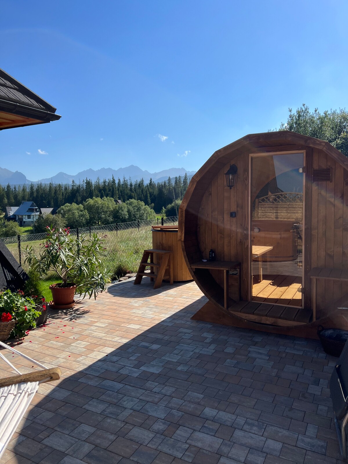 Bajkowa Lux met bubbelbad en uitzicht op de bergen.