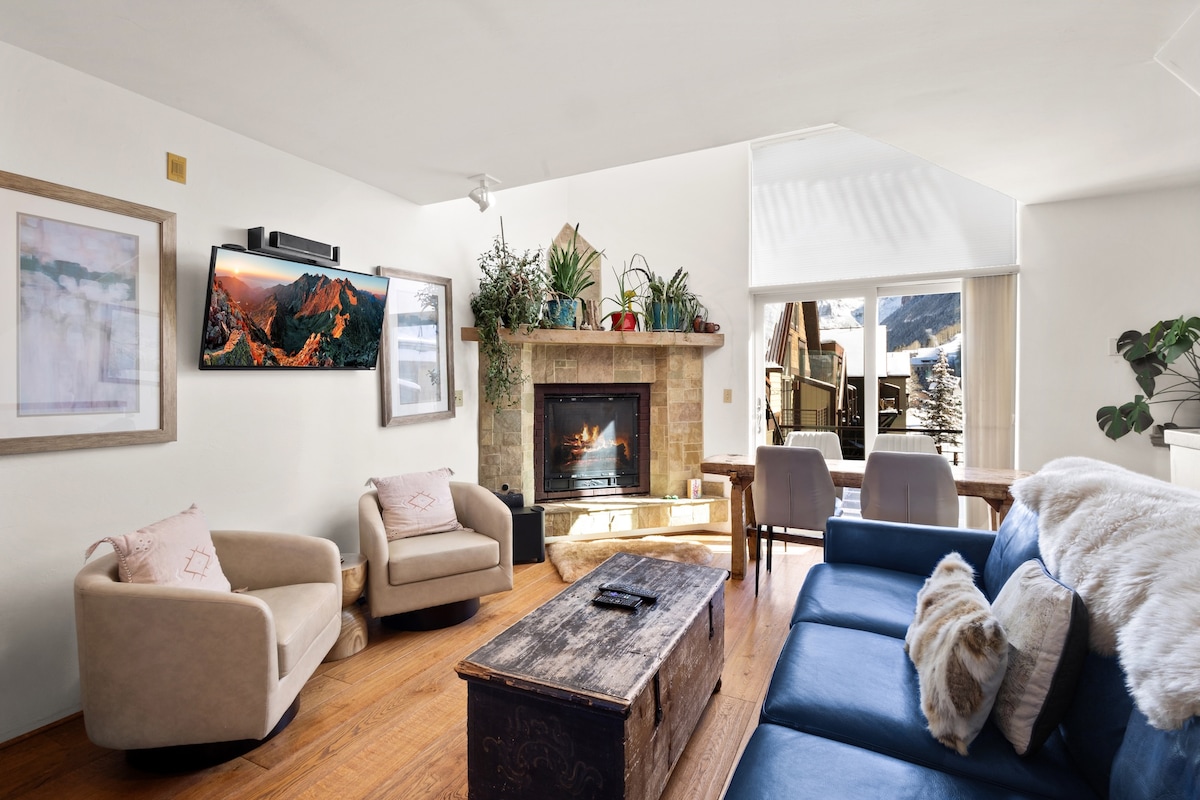Enjoy stunning views of Ajax and down valley from this amazing condo, perfectly situated for both tranquility and convenience. True ski-in/ski-out access and just steps the chairlift and the free town shuttle, you’ll have effortless access to both the slopes and the heart of town. If you are looking for your cozy winter retreat you have found it. Guests can take in the mountain views sitting next to the gas fireplace or watch the alpenglow from the balcony in our stylish 3 bedroom condo.