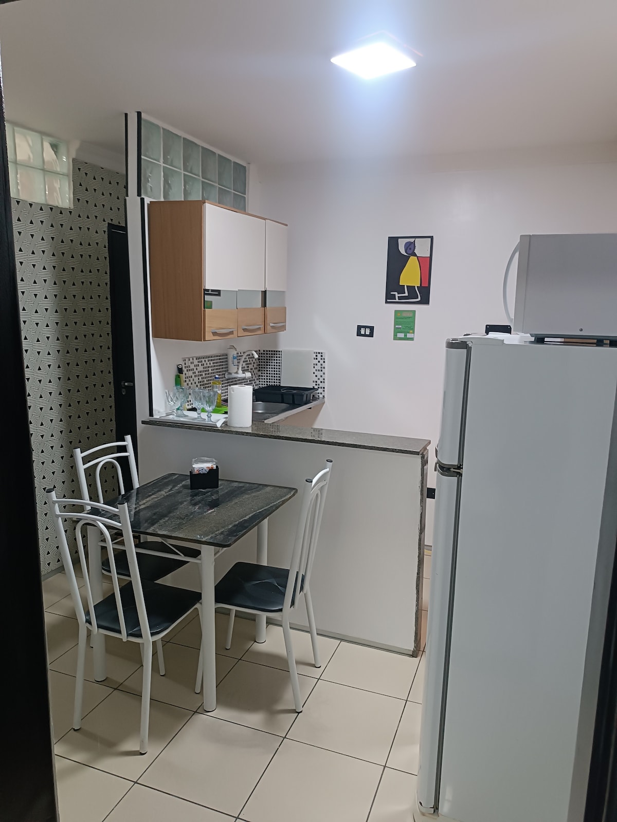 Appartement met twee slaapkamers, een suite, een badkamer, beide met een tweepersoonsbed met veren, airconditioning, kledingkast, hamer, eetkamer samen met keuken. De keuken begeleidt: verschillende soorten potten, bestek, lichamen, kopjes, borden, sandwichmaker, blender, magnetron, elektrisch fornuis, afzuigkasten. Eetkamer met drie zitplaatsen, Samsung 32 inch smartwatch-tv, internetrouter in de eetkamer. Garagem 5,15m lengte met automatische poort.