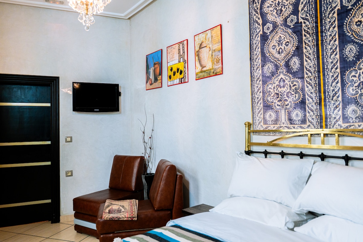 A sunny, quiet and very bright apartment with a 360° panorama view, located in the heart of medina close to everything,cafe,shop&taxi stations, also the neighbourhood gives the best impression about historical places such as; Archeological museumthe local market, community oven. The home is furnished, decorated traditionnaly, it contains one private bedroom with big size bed, living room, kitchen,bathroom with shower and terasse to relax in front of Feddan park. no unmarried couples.