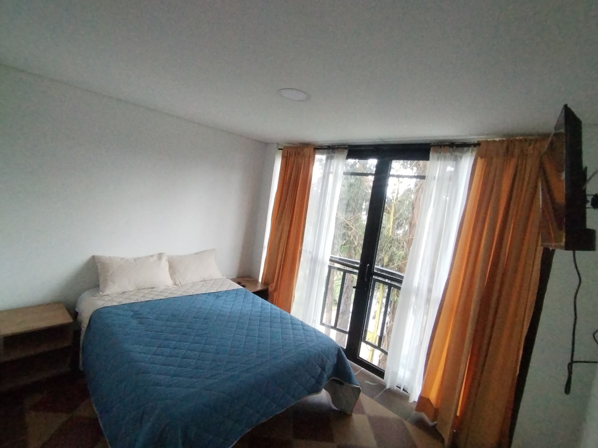 Alma Verde is veel meer dan alleen een plek om te verblijven. Het is je landhuis op een droomlocatie; een natuurlijke schuilplaats, gelegen in een bevoorrechte natuurlijke omgeving, zeer dicht bij het stedelijke centrum van Ráquira. Omgeven door weelderige natuur, fruitbomen en bloemen, die de lucht vullen met geuren en kleuren; een ware oase van rust. Het huis heeft een grote kamer, een kingsize bed en een slaapbank, evenals een complete badkamer, een volledig uitgeruste keuken, een houtgestookte oven, een eetkamer en een woonkamer in een enkele kamer.